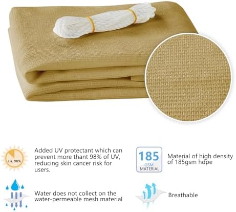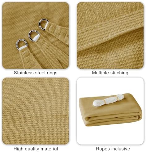 Hecho de polietileno de alta densidad de 185 g / m² (HDPE) con fuertes costuras cosidas. La vela de sombra resistentes a la decoloración, anti moho, hongos y manchas. La distancia en línea recta entre los dos D anillos es de 2 metros.
