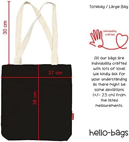 Bolso Tote (grande) para colgar al hombro. Modelo GATUNA. Negro. Realizado en 100% Algodón. Medidas: 37 cm x 38 cm, asas: 28 cm. La marca hello-bags garantiza el respeto de los mas altos estandares durante el proceso de produccion, con el fin de asegurar una excelente experiencia al cliente.
