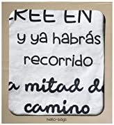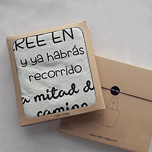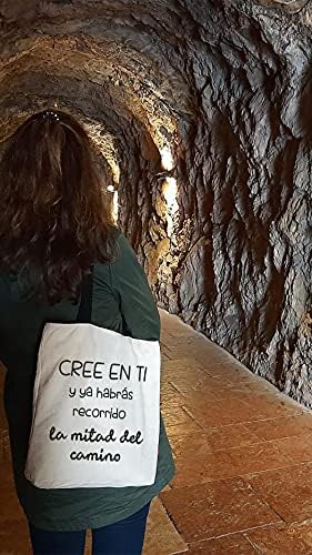 Bolso Tote (grande) para colgar al hombro. Modelo «CREE EN TI y habrás recorrido la mitad del camino». Blanco. Realizado en 100% Algodón. Medidas: 37 cm x 38 cm.