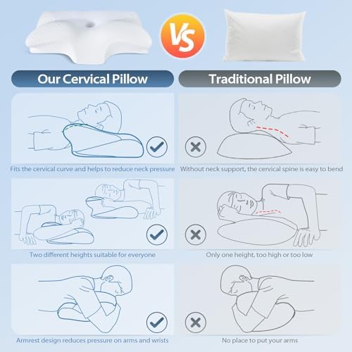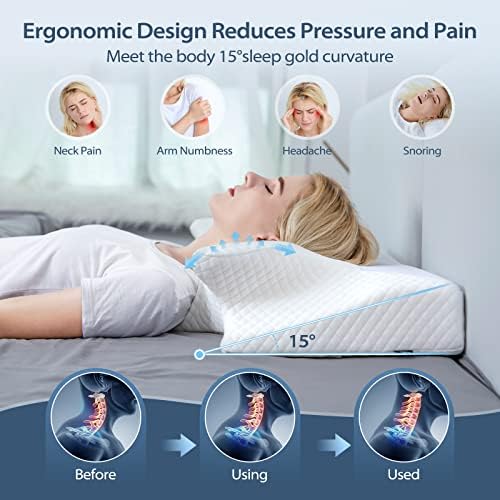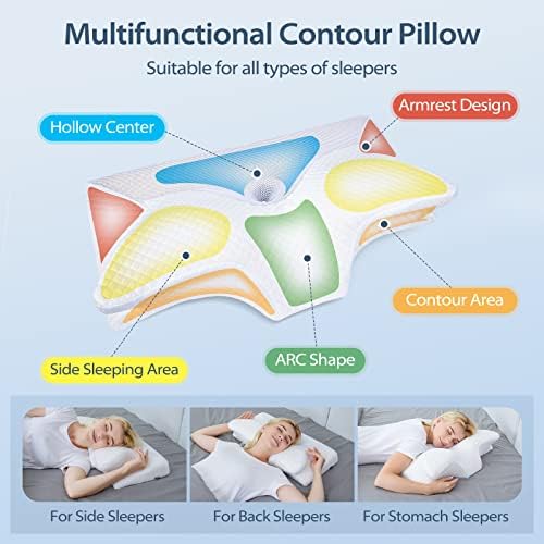 💥【Diseño Ergonómico】 La almohada ergonómica, mantiene la curva natural del cuello, con contorno cervical para sostener adecuadamente el cuello. La cavidad central de la almohada de soporte para el cuello sostiene la cabeza y asegura una postura óptima. La extensión de cuña ayuda a sostener la columna torácica y los apoyabrazos especiales de las almohadas ortopédicas sostienen los brazos.