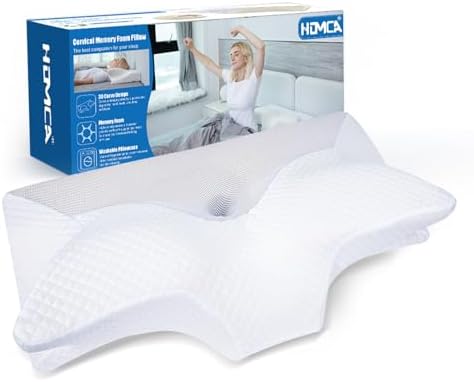 💥【Almohada Multifuncional】 ¡la almohada ortopedica HOMCA se adapta a todas las posiciones para dormir! Para los que duermen de lado, el diseño hueco central liberará la presión del oído y mantendrá el paso del aire despejado, mientras que su diseño de ranura y curva del cuerpo permite que el brazo descanse de forma natural y cómoda para una gran noche de sueño.
