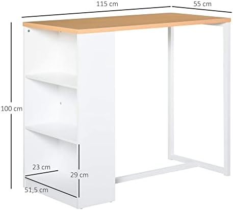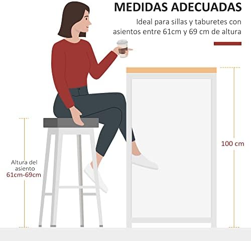 Mesa que se adapta fácilmente al comedor, la cocina, el pub o la cafetería Gran espacio de almacenaje gracias a la amplia encimera y sus 3 estantes El dispositivo antivuelco evita que la mesa se vuelque o tambalee Fabricado con tablero de MDF y metal, apto para uso prolongado Encimera gruesa para una mayor estabilidad y una capacidad mayor de carga Recomendado para un taburete estándar de altura de mostrador 60-69cm Se requiere ensamblaje