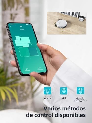 🚀【Aplicación/Voz/Control Remoto】 El robot aspirador se puede controlar fácilmente para limpiar a través de la aplicación y el control remoto. También se puede conectar a Alexa para el control de inicio y parada. También tiene una función de temporizador, por lo que limpiará automáticamente incluso cuando no estés. Nuestra aspiradora robótica es compatible con la aplicación y el idioma de voz en inglés, otros robots limpiadores no pueden hacer esto.