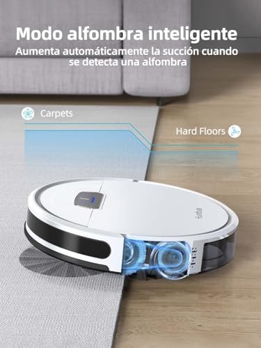 📢【Detección Avanzada de Alfombras】 Las aspiradoras robóticas detectan alfombras de manera inteligente y reaccionan rápidamente. Aumenta automáticamente la potencia en un corto período de tiempo. por lo que puede recoger fácilmente el pelo de las mascotas y las partículas de polvo ocultas, lo que aumenta la eficiencia de la limpieza. La tira de límite de 2M en el paquete se puede usar para establecer una zona prohibida para evitar que entre el robot.