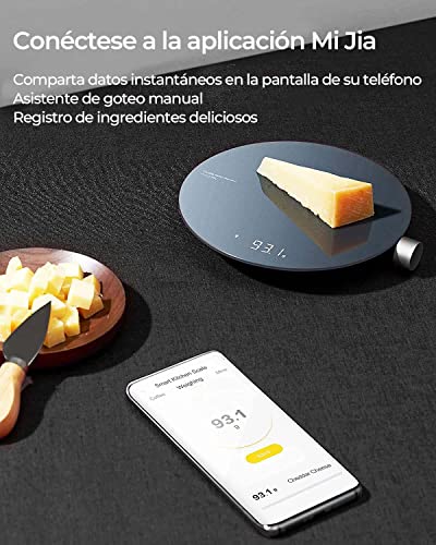 VARIAS FUNCIONES CON LA APLICACIÓN MIJIA: al conectar la báscula de café al teléfono móvil, los datos instantáneos se pueden compartir y registrar en la aplicación Mi Jia y la báscula de cocina también actúa como un asistente de goteo manual exclusivo, haciendo registros precisos del peso de la potencia del café, proporción de agua y energía del café y tiempo para preparar y extraer.