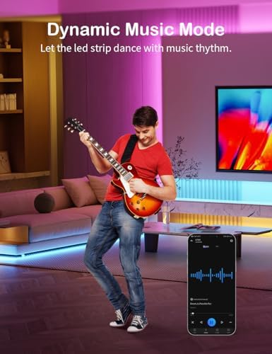 【Sincronización de Música】 El micrófono incorporado puede identificar con sensibilidad la música y hacer que la tira de luz cambie de color según el ritmo de la música. Al mismo tiempo, el modo de música y la sensibilidad se pueden ajustar según sus preferencias.