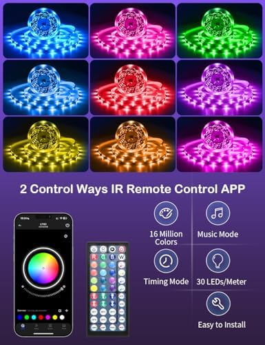 【2 Formas de Control】 La tira de LED se puede controlar mediante una aplicación o un control remoto. Control remoto de 44 teclas, puedes elegir entre 16 colores estáticos, 4 modos de música, múltiples modos de iluminación, ajustar el brillo, encender/apagar la tira de LED. O puedes descargar la aplicación «Hilighting» para obtener más funciones.