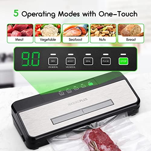 ✔️【Diseños más humanizados】- esta envasadora al vacío INK-VS03 es más funcional y útil gracias a su diseño distintivo, incluyendo el indicador de tiempo de sellado que hace más visible nuestra operación y la ventana transparente que nos permite comprobar cuando la bolsa está bien colocada.