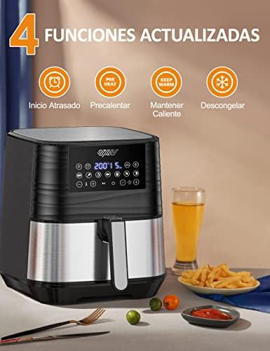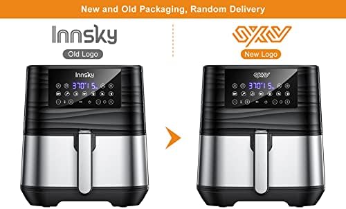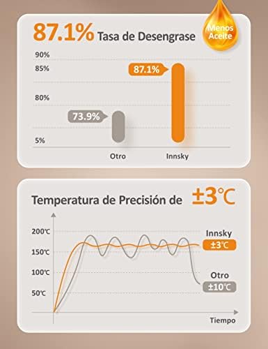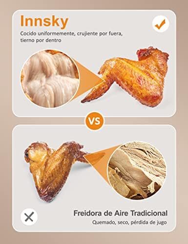 Nueva Actualización: La freidora sin aceite Innsky se actualiza nuevamente. Se agregaron funciones de precalentamiento, descongelamiento, mantenimiento del calor y inicio diferido. Función inteligente de recordatorio de batido para recordarle que debe dar vuelta la comida y ayudarle a obtener una textura más crujiente. Si desea ignorar esto, la freidora sin aceite máquina seguirá funcionando después de la indicación.
