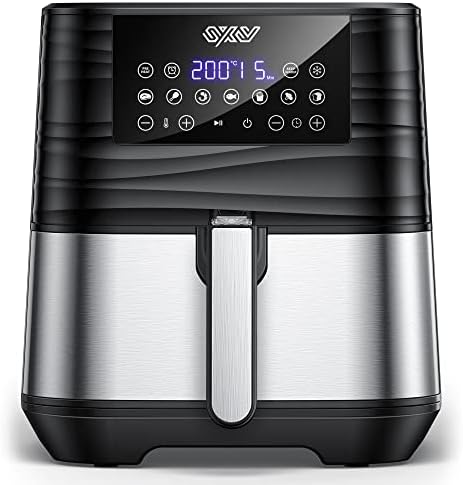 Gran Capacidad: La freidora de aire de 5,5 l puede satisfacer las necesidades de una familia de 3 a 6 personas a la vez. La cesta cuadrada de la air fryer ofrece una mayor utilización del espacio, puede caber un pollo entero de 2,3 kg o una pizza de 21 cm.