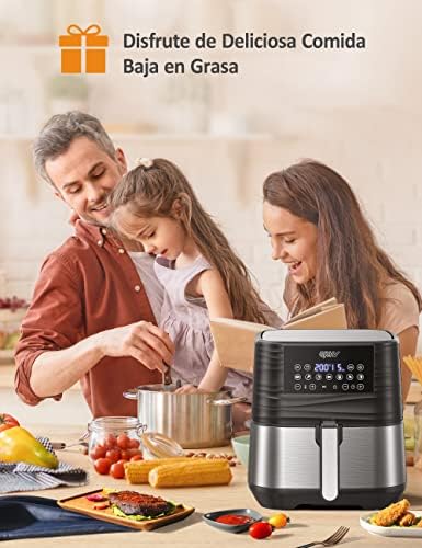 Menos Aceite, Más Saludable y Más Rápido: Con la freidora de aire puede disfrutar de alimentos con un 85% menos de grasa que los alimentos fritos tradicionales y una cocción un 50% más rápida que los hornos. La tecnología de circulación de aire caliente de 360° hace que la freidora se caliente rápidamente en poco tiempo. La tecnología de sensor NTC líder puede ajustar automáticamente las temperaturas para mantener las fluctuaciones por debajo de 5 ℃ para comidas cocinadas de manera uniforme.
