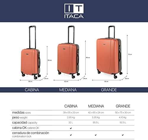 ITACA – Maletas Grandes de Viaje: Maleta Grande 23 Kilos, Maleta Viaje Grande, Maleta De Viaje para Todas Tus Aventuras. Material ABS Resistente y Ligera 71170, Coral-Antracita