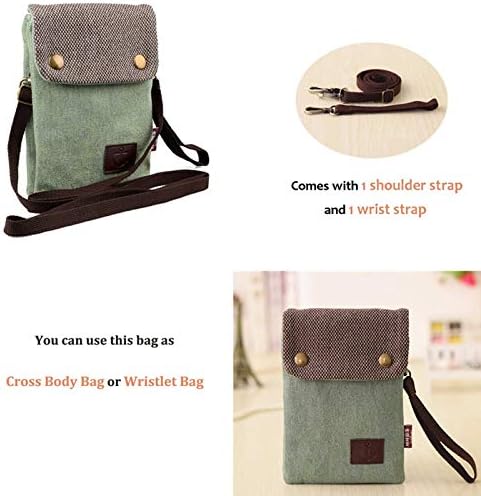 - Compacto, pero lo suficientemente espacioso para guardar un teléfono grande, una cartera pequeña, una barra de labios, llaves, auriculares, pasaporte, permiso de conducir y otros objetos pequeños.