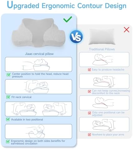 ⭐Varias posiciones para dormir: Gracias a las diferentes formas de los lados de la almohada, la suave almohada de espuma viscoelástica JIAAO es ideal para quienes duermen de lado, boca arriba y boca abajo. Además, el uso prolongado de la almohada ortopédica JIAAO puede corregir eficazmente las malas posturas durante el sueño.