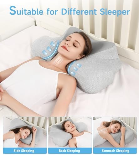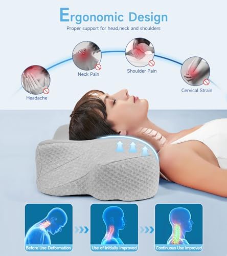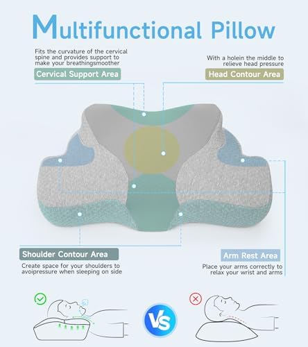 ⭐Ergonomía de cola de pez biónica: la almohada cervical mantiene la cabeza en la posición correcta mientras duermes. Se adapta a la curvatura del cuello, permitiendo que se doble de forma natural. La columna vertebral, la cabeza y el cuello reciben un apoyo óptimo y adecuado. Le permite conciliar el sueño de forma rápida y profunda.