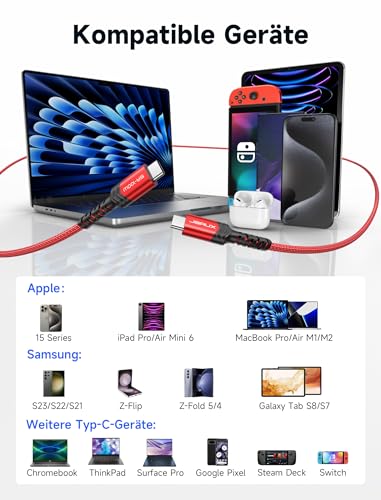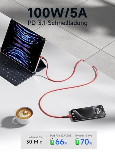 ⚡【Puertos C de doble extremo】Este es un cable USB C a USB C, lo que significa que es un cable de carga de puerto C de doble extremo. NOTA: para lograr la velocidad de carga más rápida, necesita un cargador con un conector USB tipo C que admita una potencia de salida de 100W.