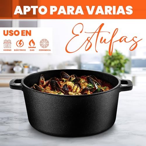 Distribución Uniforme Del Calor: La olla holandesa de hierro fundido está fabricada por expertos para retener el máximo calor y mantener la humedad óptima. Sus gruesas paredes mantienen la temperatura estable, lo que la hace perfecta para dorar carnes y saltear verduras.
