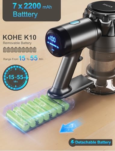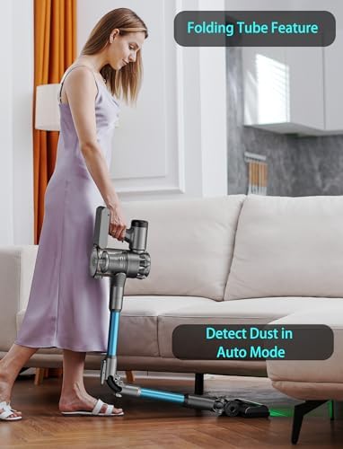 【Potente y rápido de limpiar】 Con una potencia de 500W y una succión máxima de 33kpa, motor independiente incorporado de 3 modos en el cabezal del piso, la aspiradora inalámbrica atrapa fácilmente no solo la suciedad superficial, sino también la suciedad profundamente arraigada para las necesidades de limpieza de rutina.