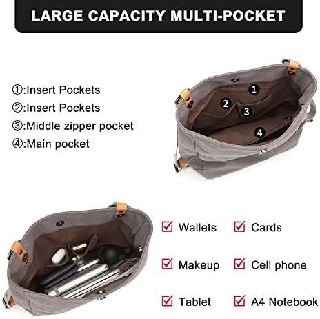Lona duradera y lavable de alta calidad, aspecto vintage y elegante, resistente a la suciedad y fácil de lavar, las costuras en la bolsa son bonitas y fuertes, de buena calidad y diseño simple es lo mejor para usted.