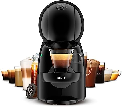 Cafetera negro y gris Piccolo XS para cápsulas Nescafé Dolce Gusto, café cremoso gracias al sistema de alta presión de las máquinas de hasta 15 bares capaz de hacer café profesional caliente desde la primera taza gracias a su sistema Thermoblock