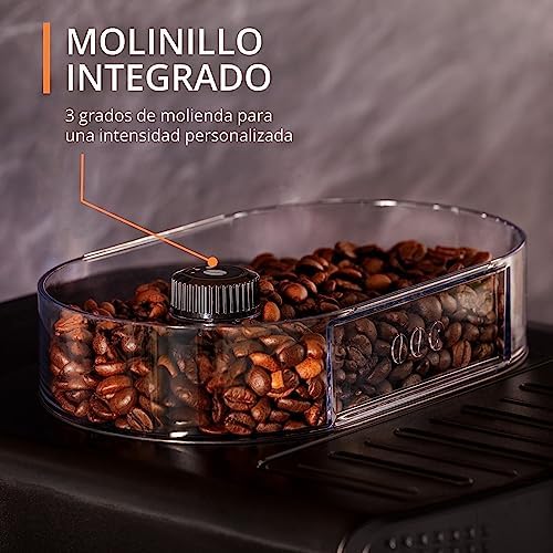 Molinillo integrado diseñado para unos resultados de molido al nivel de un barista profesional; con las tres texturas de molienda podrás disfrutar tanto de un ristretto como de un expresso o un café largo