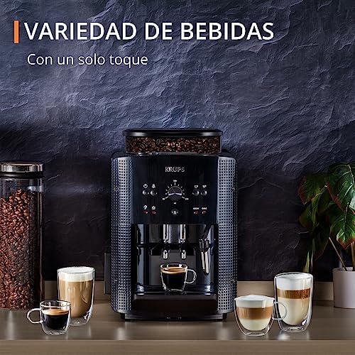 Cafetera automática de café con 15 bares de presión y tres niveles de selección intensidad de café; además de ello dispone de un regulador de la cantidad de café con función automática de vapor para calentar agua o leche, o preparar infusiones