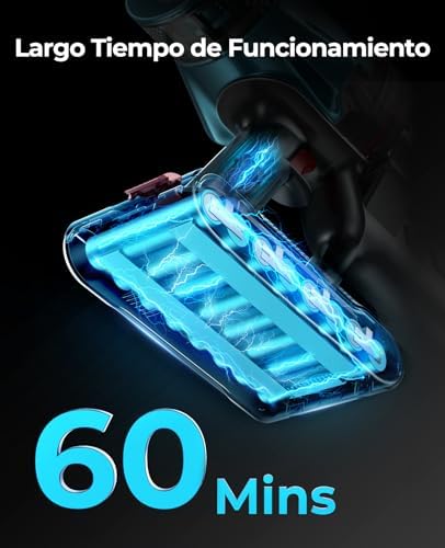 🔋【Hasta 60min de Autonomía y Soporte Recargable】La batería de esta aspiradora escoba sin cable ha pasado a las 8 celdas, que tienen una duración y una vida útil más larga. A potencia mínima de succión, la batería dura hasta 60 minutos. A máxima potencia, la batería dura hasta 20 minutos. La aspiradora puede cargarse por completo en sólo 4-5 horas. Descanse tranquilo sabiendo que puede disfrutar de una potente succión a largo plazo sin la molestia de reemplazos o reparaciones frecuentes.