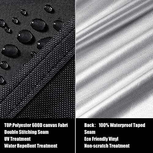 La Funda mesa de Jardin hecha de tela Oxford 600D resistente con revestimiento de PU, bordes con doble pegamento y costuras de doble hilera, puede soportar una presión de agua de hasta 10000 Pa, que es impermeable a la nieve, apta para el invierno y resistente