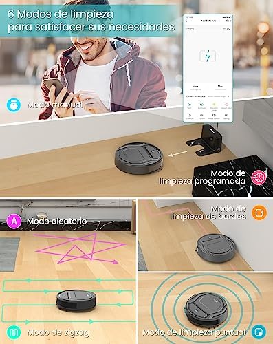 【6 modos de limpieza】 La mayoría de los robot aspirador en el mercado tienen un modo de limpieza aleatorio. En comparación con ellos, el robot aspirador Lefant M210P tiene seis modos de limpieza: automático, ordenado, puntual, de borde, programado y control direccional. Con la trayectoria curva de limpieza en tres etapas, ¡la limpieza se vuelve tan fácil! (⚠️Solo WiFi de 2.4GHz)
