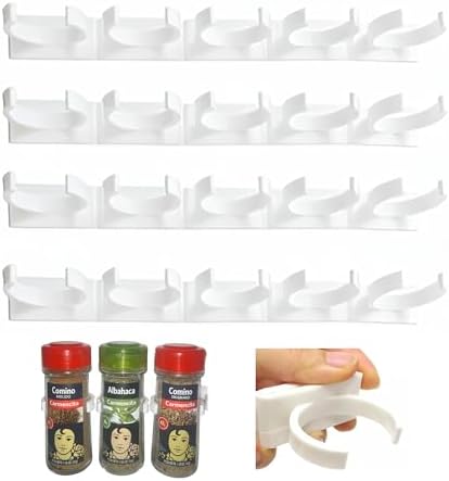 ⚙️[FÁCIL INSTALACIÓN] 4 x 5 Soporte de Racks ideal como organizador de cocina para el orden de tus estanterías con 20 especias, sin necesidad de tornillos; siga las instrucciones asegurando una sujeción perfecta.