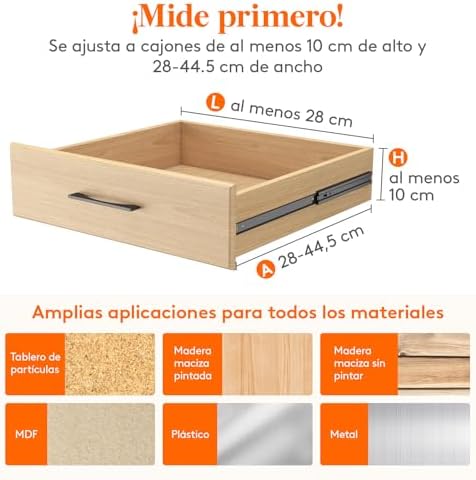 ● Tamaño recomendado del cajón: Al menos 10 cm de alto y 28-44.5 cm de ancho