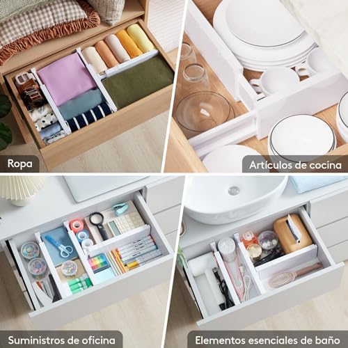 Multifuncional: Estos organizadores de cajón se pueden instalar en cualquier cajón de tu casa u oficina. Perfectos para organizar ropa, utensilios de cocina, suministros de oficina, maquillaje, desorden del baño y más. Ideal para mantener tus pertenencias organizadas y fáciles de encontrar.
