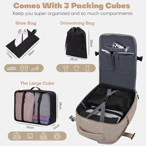 ✈️𝐌ú𝐥𝐭𝐢𝐩𝐥𝐞𝐬 𝐂𝐨𝐦𝐩𝐚𝐫𝐭𝐢𝐦𝐞𝐧𝐭𝐨𝐬✈️La mochila de viaje cabina tiene muchos compartimentos para organizar fácilmente su equipaje. El espacioso compartimento principal puede contener artículos de viaje para 2-3 días, y la correa elástica fija evita que los artículos se caigan. Equipada con un bolsillo independiente para portátil con capacidad para un portátil de 14″.