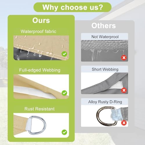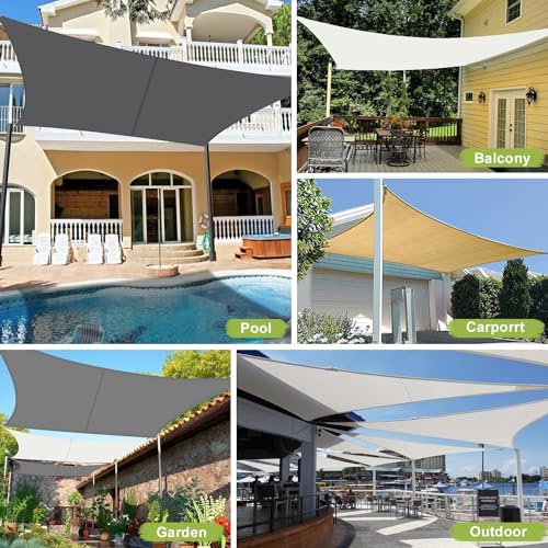 【Alta calidad】Vela de sombra fabricada en polietileno de alta densidad 100% nuevo de 180 g/m².95% de protección UV efectiva (UPF50+),El toldo impermeable tiene un doble revestimiento de PU en el interior
