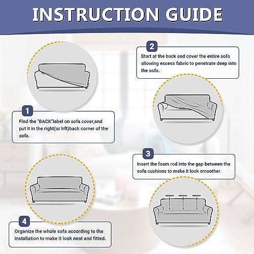 【FÁCIL DE INSTALAR】Con esta funda de sofá multifuncional puede instalarla en cuestión de minutos, sólo tiene que poner la funda sobre su sofá, luego atar el cordel y meter el palo de espuma en la hendidura. Le dará a su sofá un nuevo aspecto.