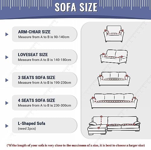 【NOTA DE TAMAÑO】 Es necesario medir la anchura del sofá + la altura de los 2 reposabrazos + la anchura de los 2 reposabrazos. 1 plaza 90-140 cm; 2 plazas 140-180 cm; 3 plazas 190-230 cm; 4 plazas 230-300 cm; fundas de almohada 45×45 cm.Esta funda de sofá elástica está hecha de tela duradera y altamente elástica. Adecuado para la mayoría de los tipos de sofá.