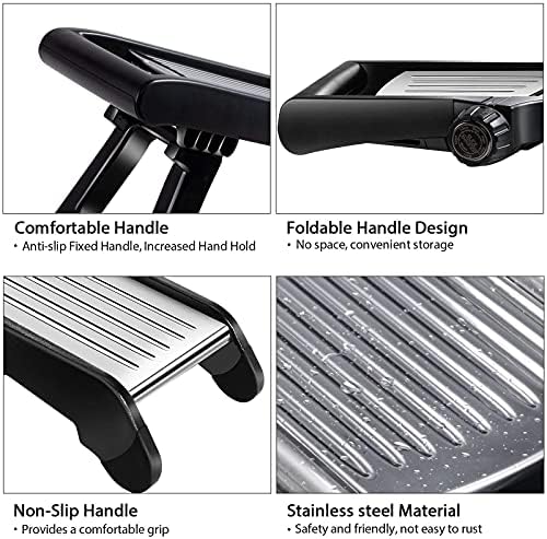 Seguro de Usar – Nuestra mandolina hecha de plástico ABS no tóxico y sin BPA garantiza comidas saludables para su familia. Los pies de goma antideslizantes garantizan la buena estabilidad de la mandolina durante el uso.