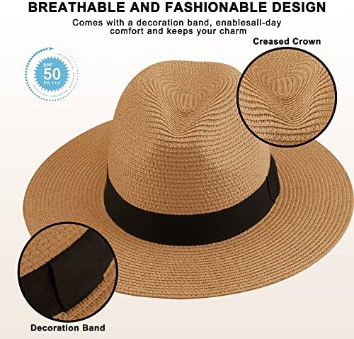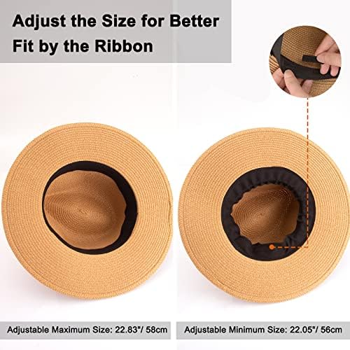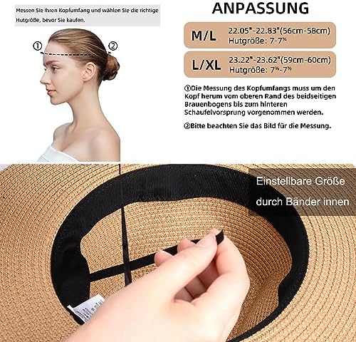 Circunferencia de la cabeza de 22.05 «-22.83» (56-58cm) El tamaño del sombrero es de aproximadamente 7-7 1/4. Exquisito tejido a mano: hecho por una banda de tejido de paja y sarga de papel natural de alta calidad
