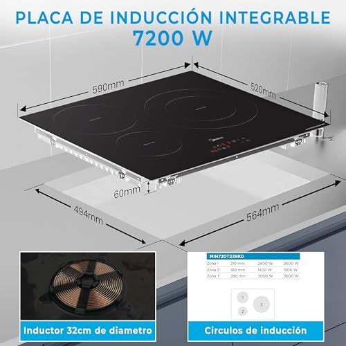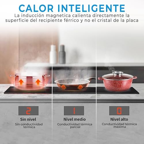 El inductor extra-grande de 32 cm de diámetro nos permite el uso de paellas o utensilios de gran diámetro adaptándose a nuestro tipo de cocina.