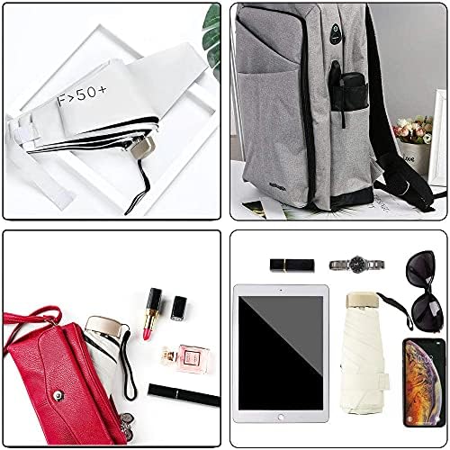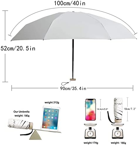 Pequeños y lindos, viajes livianos, los paraguas se pueden colocar en bolsas grandes, medianas y pequeñas, la longitud del cuerpo del paraguas es de aproximadamente 18cm después de que se recoge el paraguas, el volumen es súper pequeño y se puede llevar a cualquier lugar.