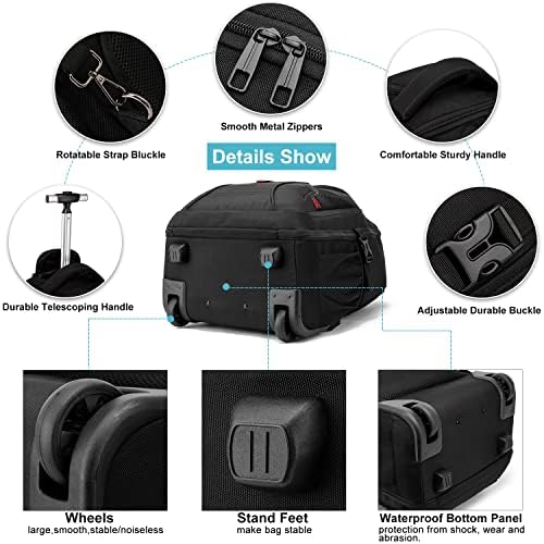 APTO PARA VIAJES: esta mochila con ruedas para portátil es apta para el punto de control y cabe fácilmente en la mayoría de los compartimentos superiores de las aerolíneas y cumple con la mayoría de los requisitos de tamaño de equipaje de mano de las aerolíneas. Esta mochila con ruedas de viaje está totalmente preparada para viajeros de negocios internacionales y universitarios. vida escolar. Gran elección de bolsa para computadora portátil con ruedas.
