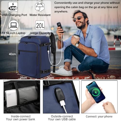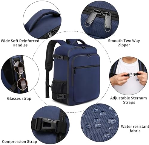 ✈️BOLSA DE CABINA DE TAMAÑO PERFECTO PARA RYANAIR: el tamaño de la mochila de cabina es 40x20x25cm, Peso: 0,65 kg, Capacidad: 20L. El tamaño perfecto cumple con la franquicia de equipaje de mano gratuito de Ryanair y puede maximizar su capacidad de equipaje con esta mochila para equipaje de mano. No hay necesidad de preocuparse por pagar una tarifa de envío adicional por tamaños grandes. Es perfecto para viajes cortos. (Consejos: no sobrecargue, medido después de llenar la mochila)