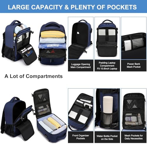 ✈️MUCHO ESPACIO Y MUCHOS COMPARTIMIENTOS: el equipaje de mano de cabina de 20 litros parece pequeño, pero sorprendentemente tiene capacidad para más de lo que piensas. Amplio compartimento principal con apertura estilo maleta, puede satisfacer las necesidades de viajes cortos de 3 a 4 días. 1 bolsillo acolchado separado para computadora portátil o tableta de 14 pulgadas; Bolsillos laterales para guardar botellas de agua, bolsillo de seguridad en la parte trasera para cartera y pasaporte.