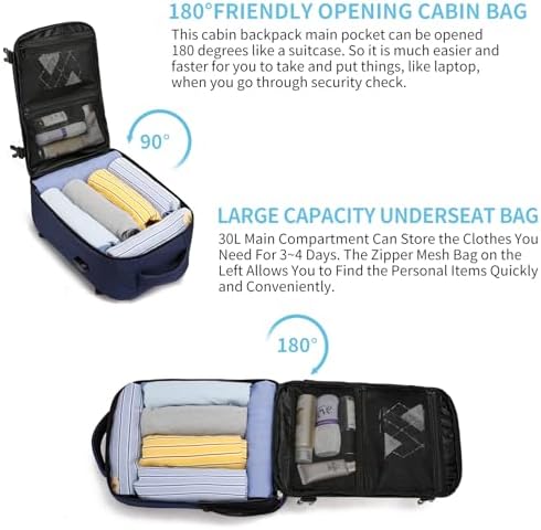 ✈️EL TAMAÑO PERFECTO CABE DEBAJO DEL ASIENTO Y APROBADO POR LA MAYORÍA DE LOS VUELOS: el tamaño y el diseño de esta mochila son perfectos para viajes en avión. Se adapta perfectamente a las restricciones de tamaño del equipaje de mano de las aerolíneas económicas, incluida Easyjet, e incluso se desliza fácilmente debajo del asiento, brindando un cómodo acceso a lo esencial durante el vuelo. Se puede abrir 180° como una maleta para pasar rápidamente por el control de seguridad del aeropuerto.