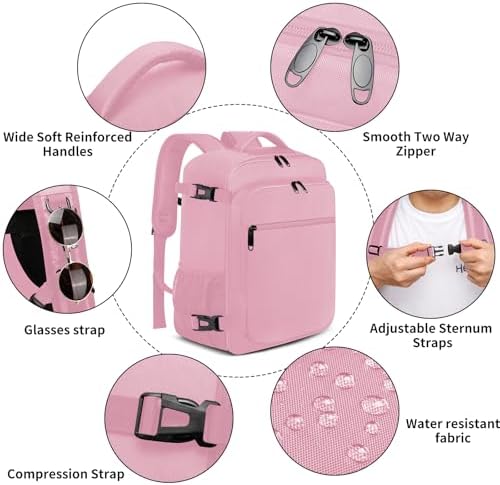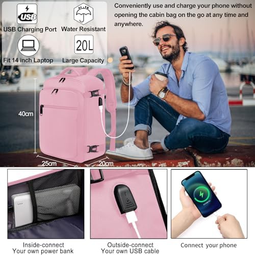✈️BOLSA DE CABINA DE TAMAÑO PERFECTO PARA RYANAIR: el tamaño de la mochila de cabina es 40x20x25cm, Peso: 0,65 kg, Capacidad: 20L. El tamaño perfecto cumple con la franquicia de equipaje de mano gratuito de Ryanair y puede maximizar su capacidad de equipaje con esta mochila para equipaje de mano. No hay necesidad de preocuparse por pagar una tarifa de envío adicional por tamaños grandes. Es perfecto para viajes cortos. (Consejos: no sobrecargue, medido después de llenar la mochila)