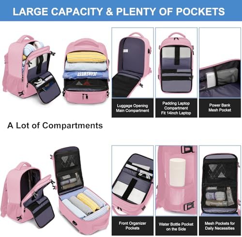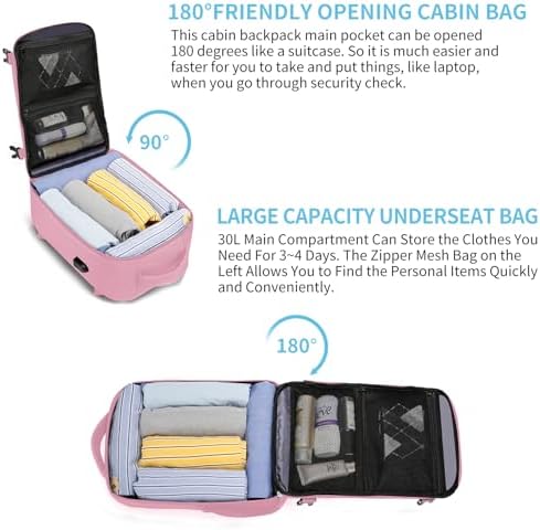 ✈️EL TAMAÑO PERFECTO CABE DEBAJO DEL ASIENTO Y APROBADO POR LA MAYORÍA DE LOS VUELOS: el tamaño y el diseño de esta mochila son perfectos para viajes en avión. Se adapta perfectamente a las restricciones de tamaño del equipaje de mano de las aerolíneas económicas, incluida Easyjet, e incluso se desliza fácilmente debajo del asiento, brindando un cómodo acceso a lo esencial durante el vuelo. Se puede abrir 180° como una maleta para pasar rápidamente por el control de seguridad del aeropuerto.