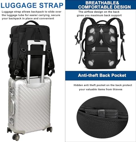 ✈【AMPLIO ESPACIO Y MUCHOS BOLSILLOS】 -Esta mochila de viaje tiene un gran compartimento central con cremallera, se puede abrir 180° como una maleta, lo que facilita guardar su equipaje en ella, hay cinturones de equipaje en el interior para guardar su ropa. lugar. Un compartimento frontal con cremallera con muchos bolsillos útiles para guardar diferentes objetos pequeños. El bolsillo con cremallera en la parte trasera. Un bolsillo de malla en el lateral para la botella de agua.