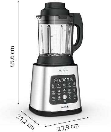 Desde batidos de frutas hasta sopas calientes y mucho más. Esta versátil batidora de vaso de Moulinex ofrece una mezcla potente y de alta velocidad gracias a su motor de 1400 W y sus cuchillas Powelix afiladas para un rendimiento de corte óptimo y resultados suaves. Con la tecnología de cuchillas Powelix obtienes un rendimiento hasta un 30% más rápido*, así como un panel de pantalla táctil intuitivo con 10 programas automáticos de frío y calor. ¡Todo a tu alcance y sin límite!