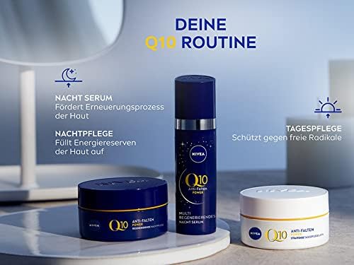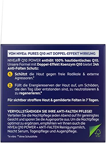 Contenido y detalles: NIVEA Q10 cuidado nocturno regenerador de energía de 50 ml, hidratante contra arrugas, crema antiarrugas para todo tipo de piel, número de artículo 81289