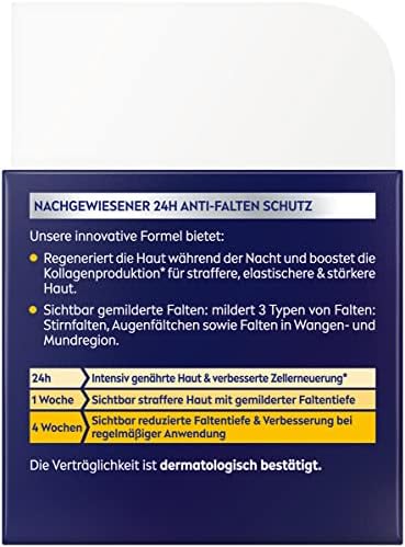 Fórmula innovadora: la crema nutritiva de noche ofrece una protección antiarrugas probada durante 24 horas y una piel más firme, así como una reducción de las arrugas en 7 días.